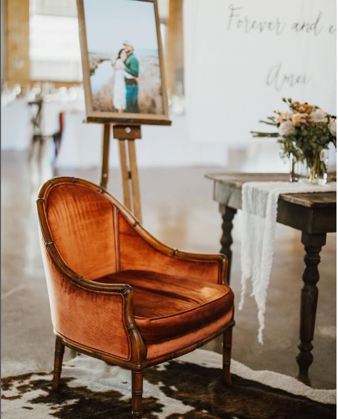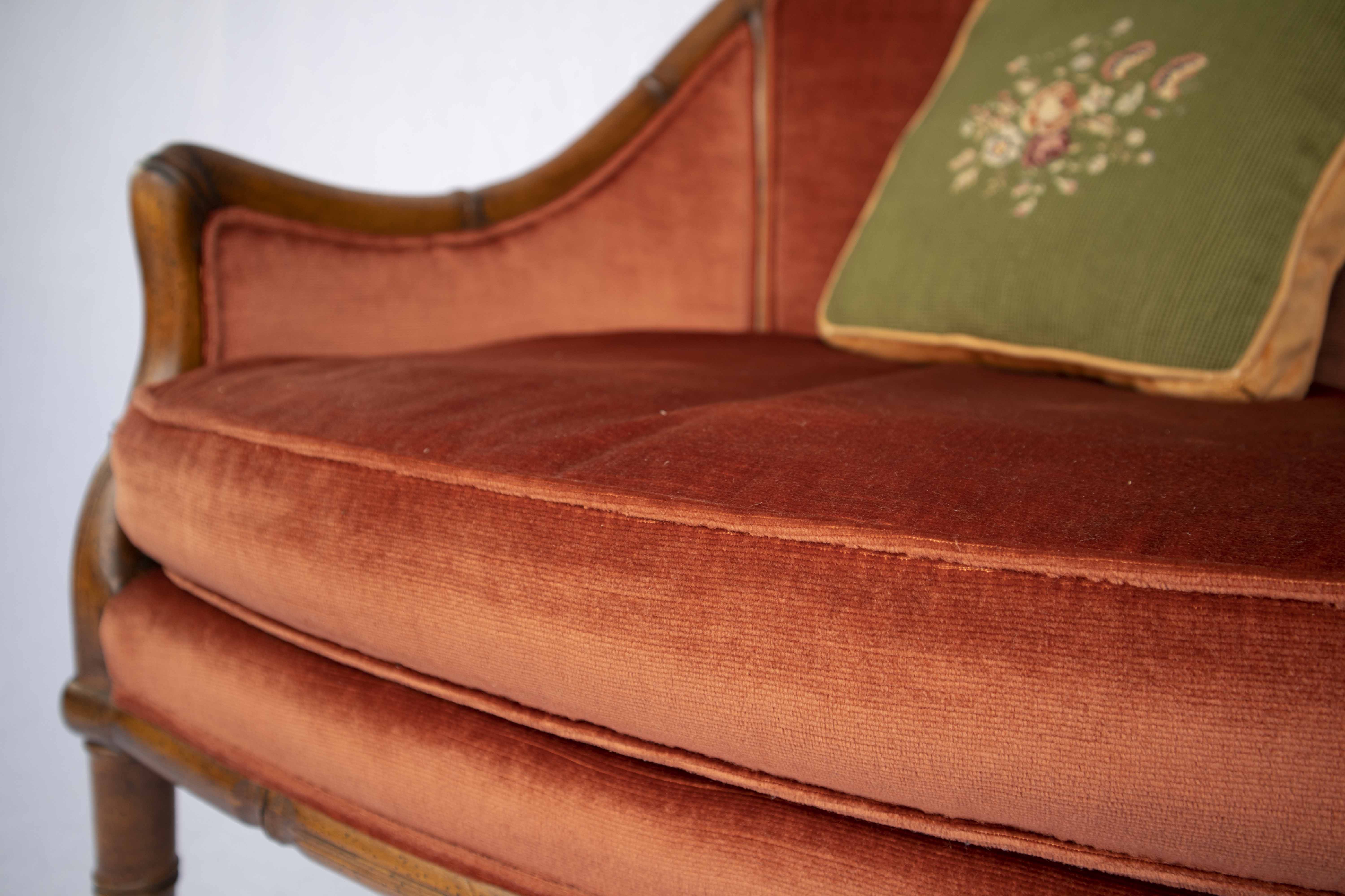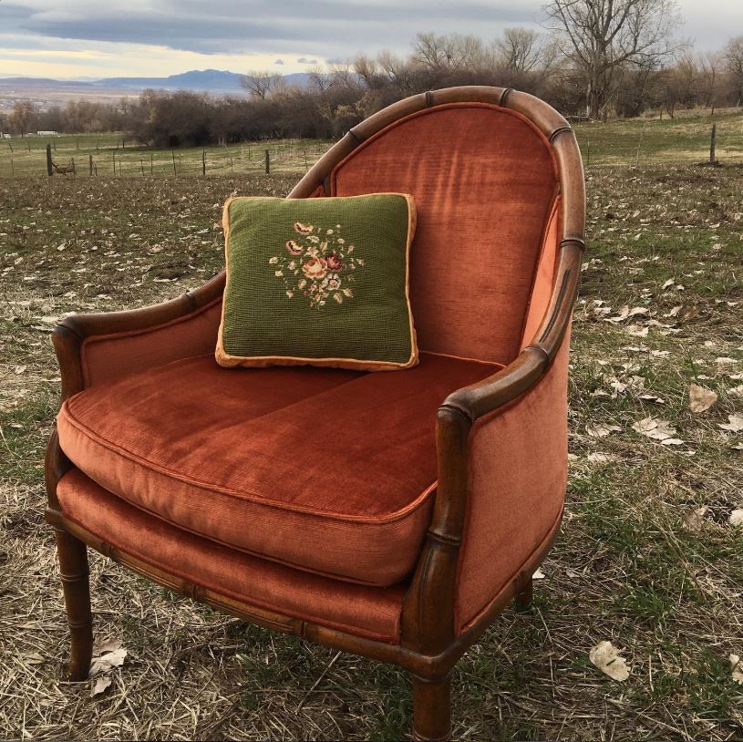 Beutiful rust color velvet chair. The color is rich and lush.