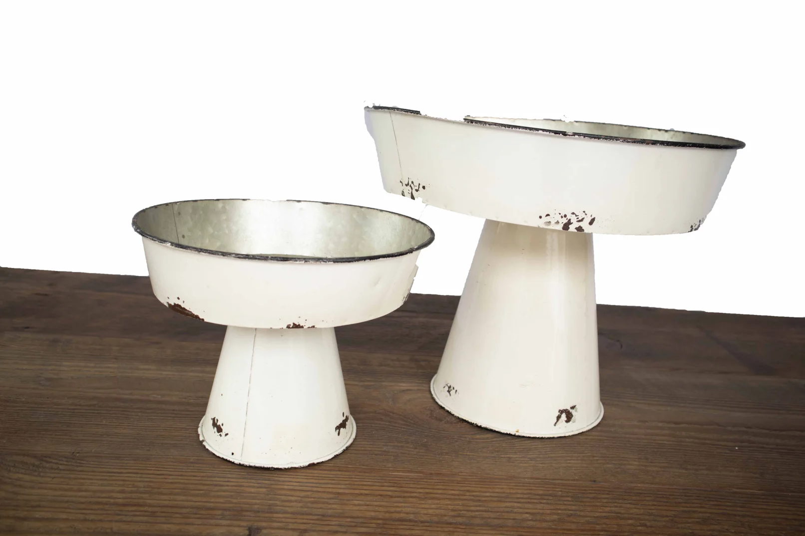 dakota dessert stands Metal serving stands. A good way to display desserts, flowers, etc.Quantity: set of 2Dimensions: Large - 14" wide x 12" tall Dimensions: Small - 10"wide x 8"tallRental Price: $15