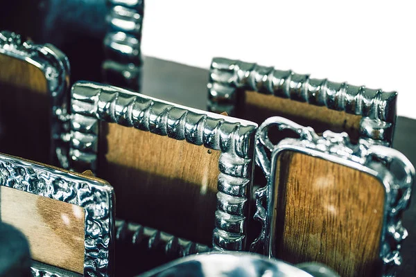 Pewter Details Collection of pewter frames and candle holders hand made in Mexico.Quantity: 20Rental Price: $1.50