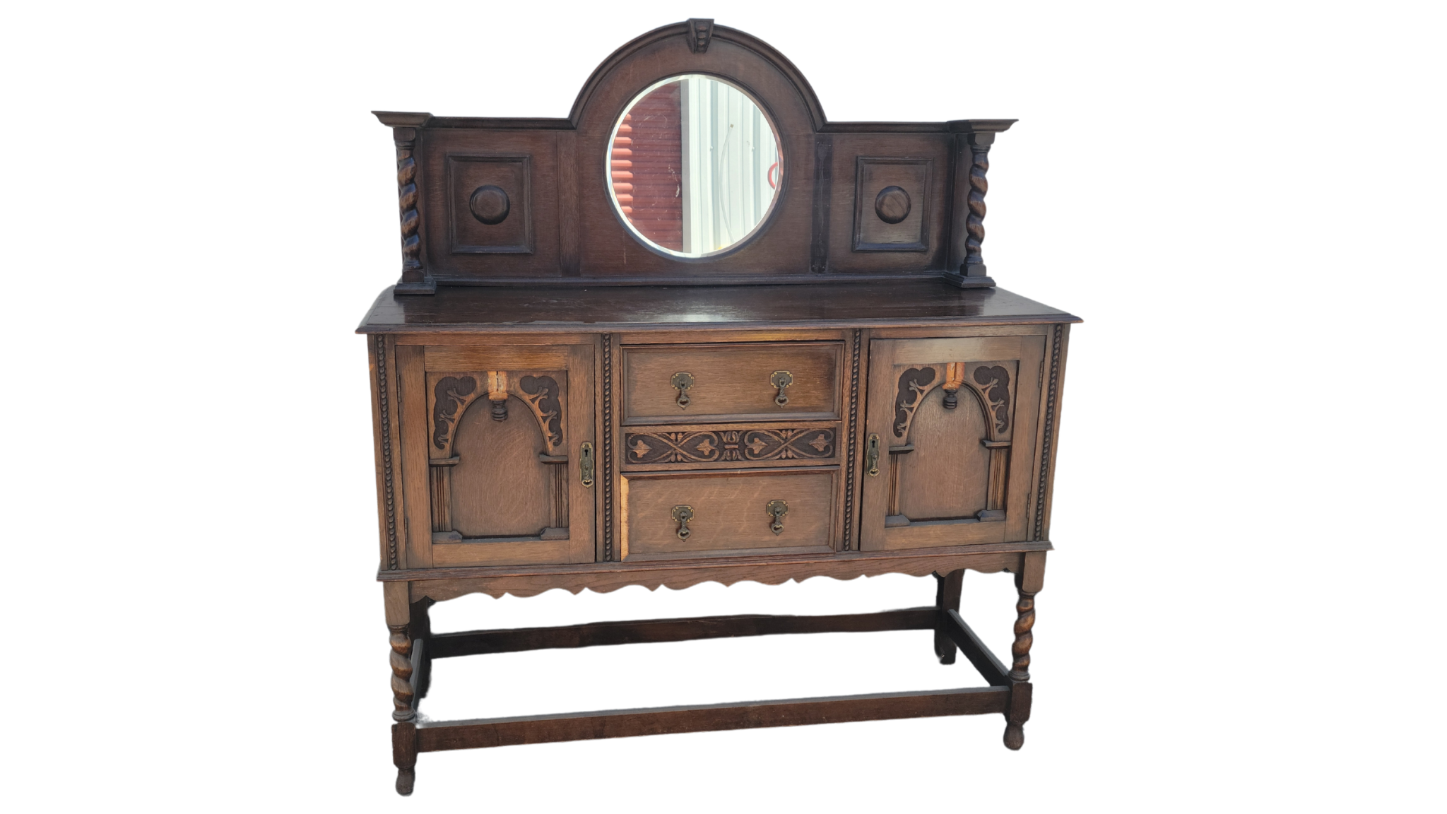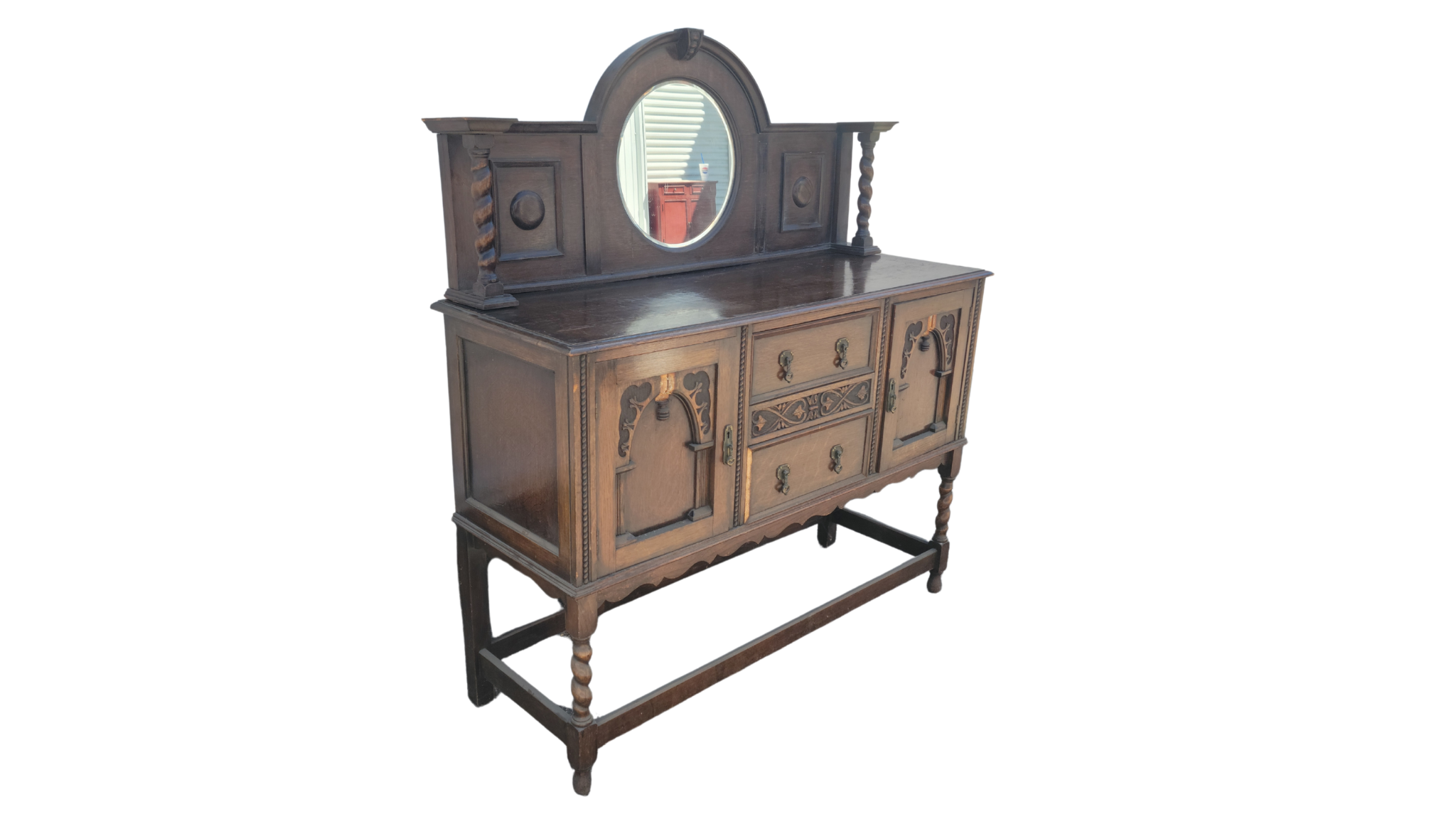This vintage hand carved wood armoire is a gorgeous detail piece.  You can use it with or without the mirror attached.
