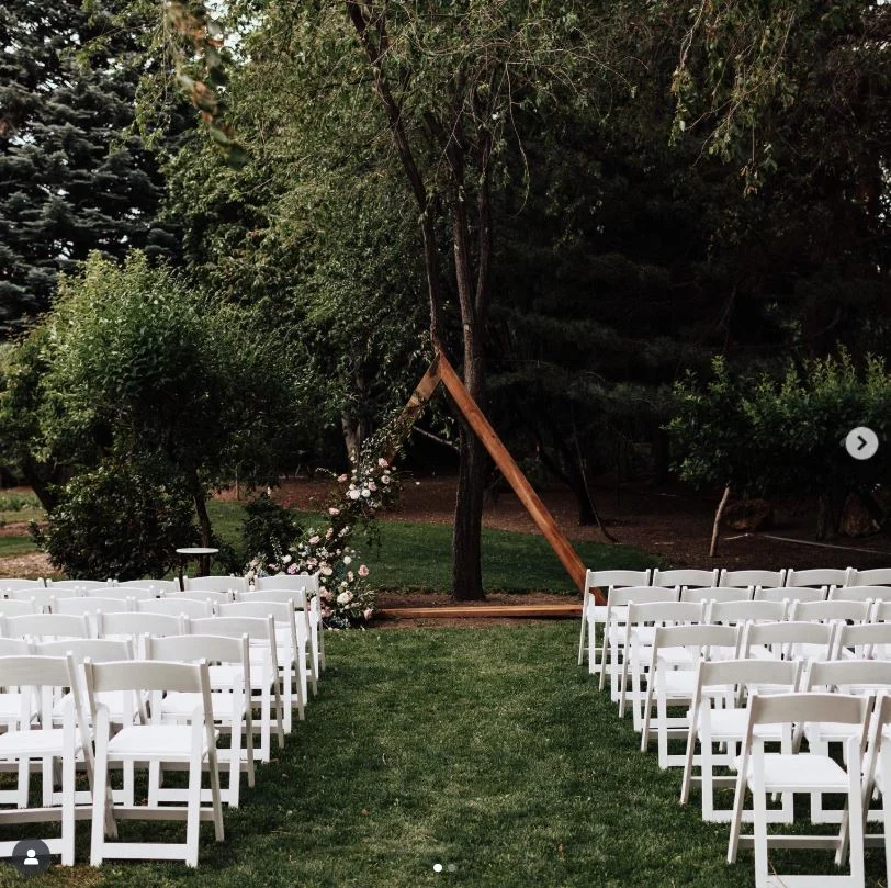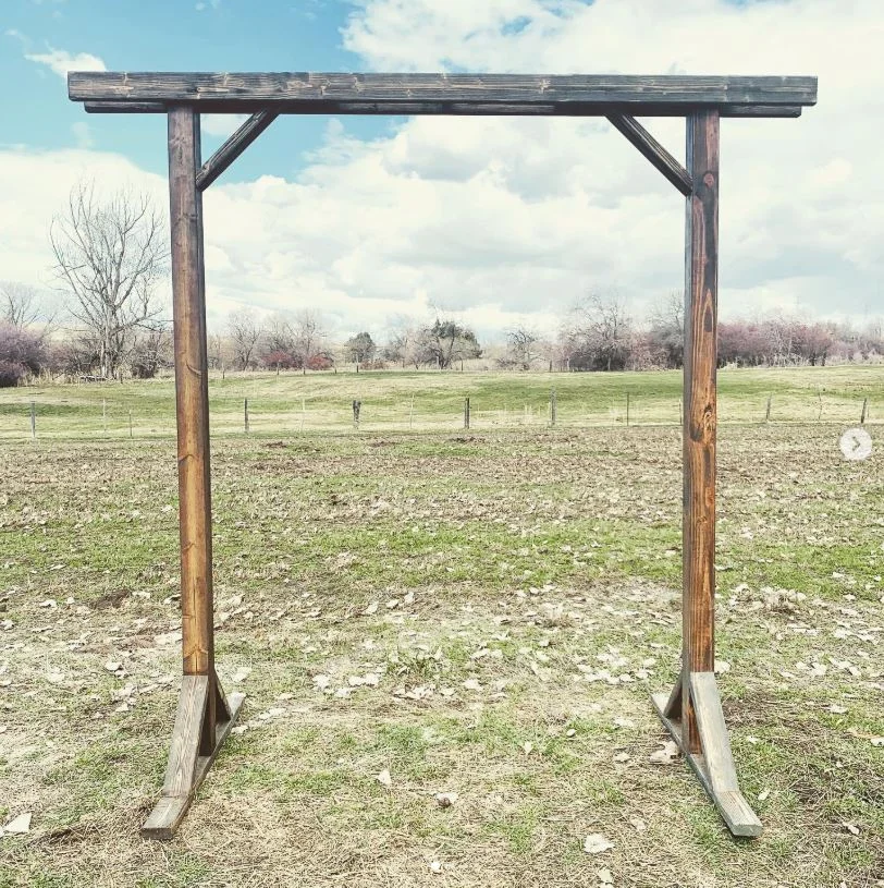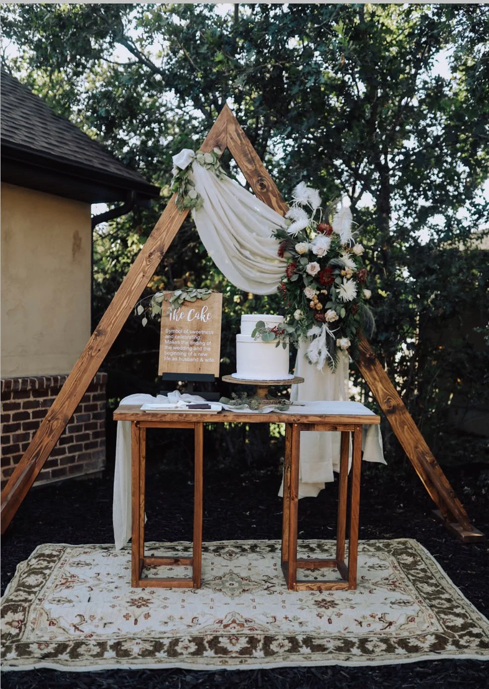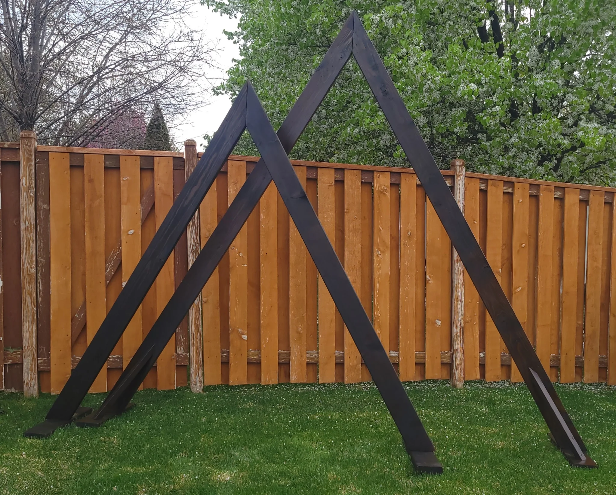 These are our free standing, solid wood triangle backdrops. You can add your own flowers, fabric, etc to make them your own. We have one of each size